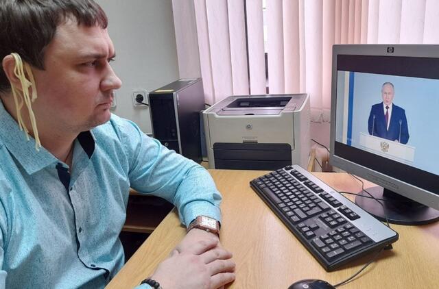 Rusijos Valstybės Dūmoje pareikalavo susidoroti su deputatu, kuris klausėsi Putino su makaronais ant ausų