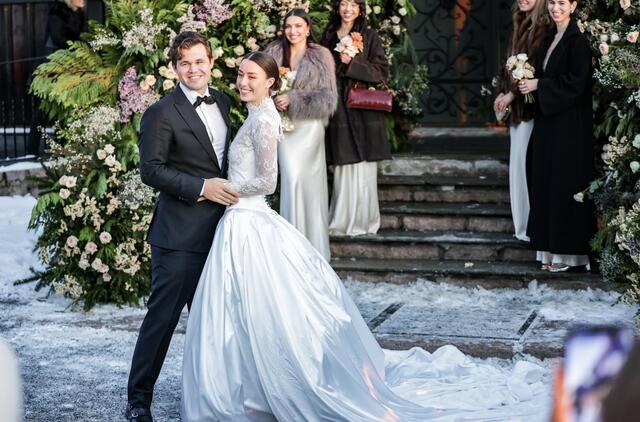 Jiedu aukso žiedus sumainė per ceremoniją Holmenholleno koplyčioje Osle, pranešė transliuotojas NRK ir kitos norvegų žiniasklaidos priemonės. 34-erių šachmatininkas buvo pasidabinęs kostiumu ir peteliške, o aštuoneriais metaus jaunesnė jo partnerė puošėsi balta nuotakos suknia su nėriniais.