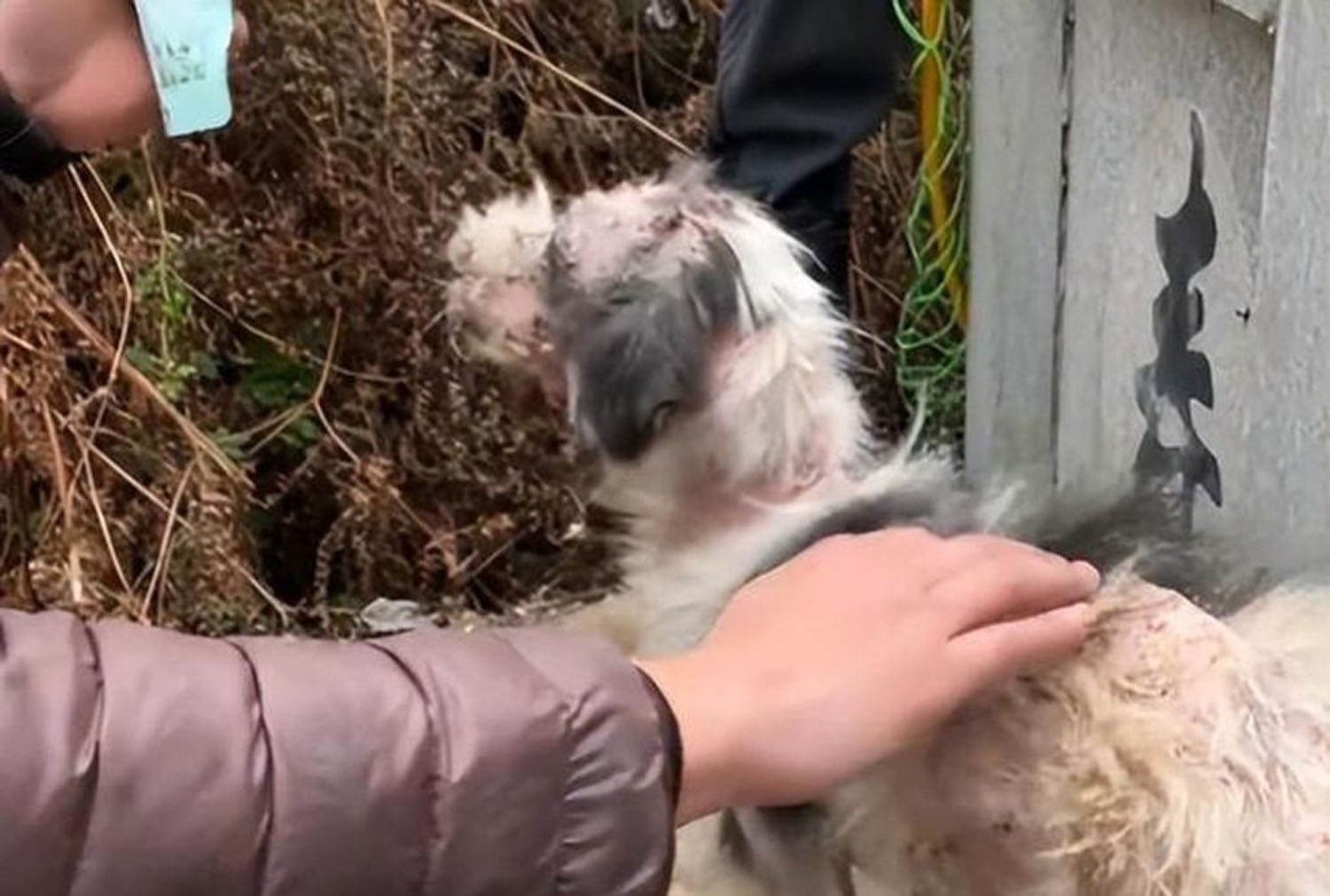 Kai vyras ištiesė ranką, norėdamas jį paliesti, šuo atrodė paklusnus. Jis suvalgė visas dešreles, kuriomis jis jį maitino. Influenceris nuvežė gyvūną į savo gelbėjimo centrą, kad būtų gydoma jo odos liga.