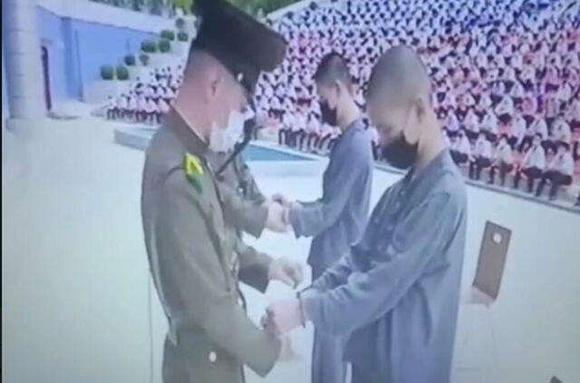 Viešo teismo proceso vaizdo įrašas, tikėtina, buvo padarytas 2022 metais. Jame užfiksuota, kai dviem pilkais chalatais vilkintiems paaugliams uždedami antrankiai. Visi dalyviai, įskaitant ir nuteistuosius, mūvi kaukes. Tai leidžia daryti prielaidą, kad filmuota buvo COVID -19 pandemijos metu, teigia „Reuters". Taip pat vaizdo įraše matosi, kaip paaugliai atgailauja prieš susirinkusius stadione žmones už tai, kad nesuprato, jog daro klaidą.