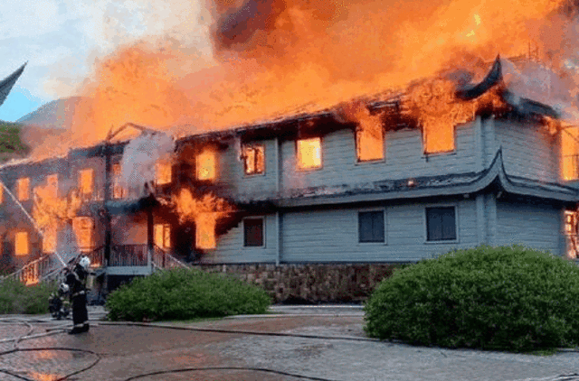 Pasak leidinio, vienas iš pastatų beveik visiškai sudegė.