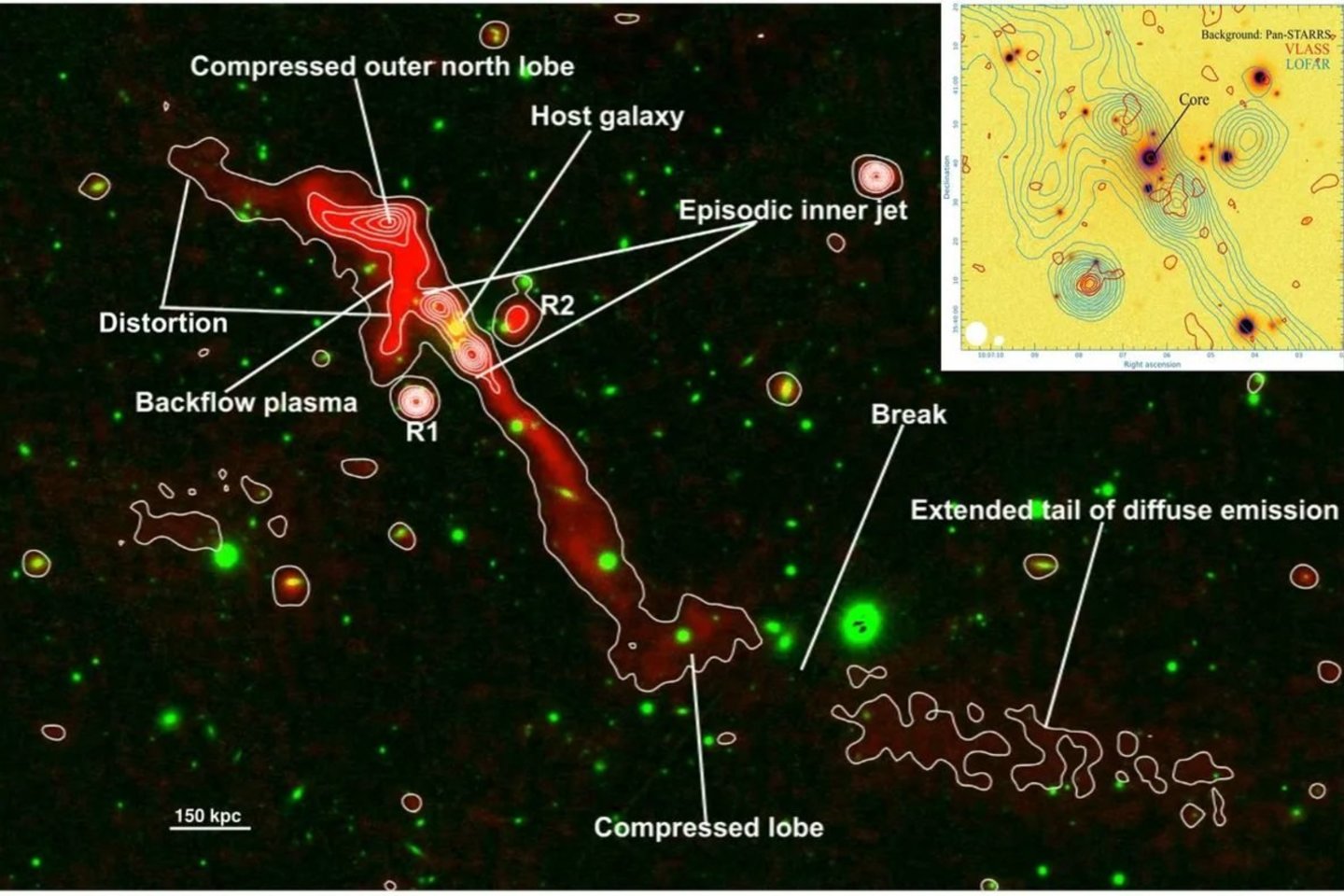 Naujajame tyrime, paskelbtame sausio 15 d. žurnale „Monthly Notices of the Royal Astronomical Society“, mokslininkai naudojo žemo dažnio teleskopų tinklą „Low-Frequency Array“, esantį daugiausia Nyderlanduose, ir aptiko daugiau nei 20 galaktikų spiečių, kuriuose buvo radijo galaktikos su netaisyklingos formos srove. Jie sutelkė dėmesį į vieną tokią galaktiką, pavadintą J1007+3540, kurios pėdsakas buvo ypač neįprastas.