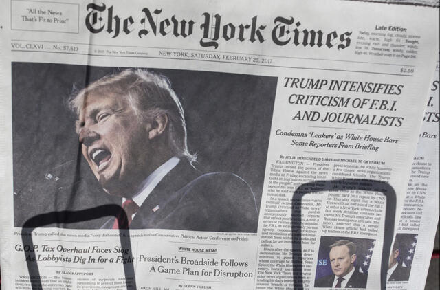 Laikraštis „New York Times“ kol kas nekomentavo D. Trumpo įrašo.