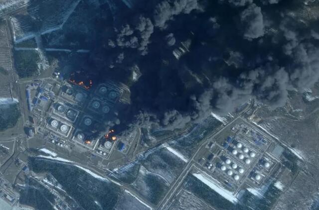 Palydovinėse nuotraukose matyti liepsnos ir tiršti juodų dūmų kamuoliai, kylantys į orą iš naftos terminalo Rusijos Primorsko mieste, esančiame prie Suomijos įlankos ir maždaug 50 km atstumu nuo šios šalies – ES ir NATO narės.