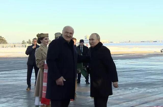Rusijos valstybinė televizija parodė vaizdo medžiagą, kurioje A. Lukašenka pasitinka V. Putiną oro uoste.