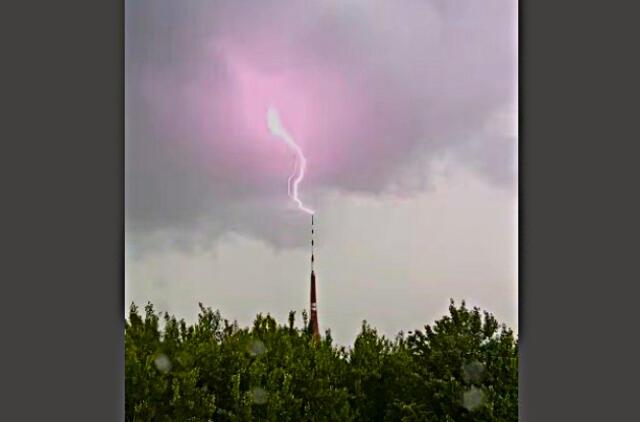 Meteorologas Toms Bricis užfiksavo ir savo „Facebook“ paskyroje paskelbė vaizdo įrašą, kuriame žaibas trenkė į televizijos bokštą Zakusalėje.