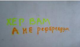 "Špygą jums": ant sienų Chersone atsirado užrašai prieš "referendumą" dėl stojimo į Rusiją