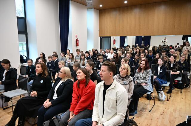 Jaunuosius pranešėjus taip pat pasveikino Klaipėdos miesto savivaldybės Imanuelio Kanto viešosios bibliotekos direktorė Renata Rudienė, kuri džiaugėsi taip sėkmingai įsibėgėjusiu projektu ir dar labiau džiaugėsi smalsiais, protingais bei talentingais mokiniais.