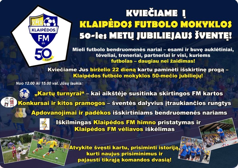 Birželio 22 d. Klaipėdos futbolo mokyklos stadione vyks išskirtinė bendruomenės šventė, skirta mūsų mokyklos 50-mečiui!