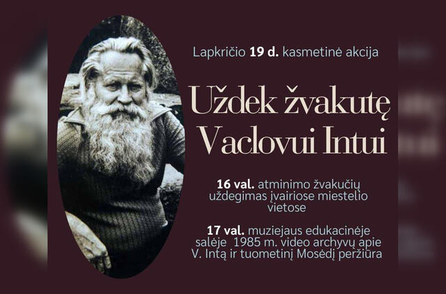 Nuo 17 val. visi rinksimėa į Vaclovo Into akmenų muziejaus edukacinę salę pasidalinti prisiminimais ir peržiūrėti muziejaus 1985 m. video įrašą iš muziejaus archyvo, kuriame matysime dar gyvą gyd. Vaclovą Intą, akmenų parką kūrimo pradžioje, gražiausias to meto Mosėdžio sodybas ir V. Intą su jo šeima.