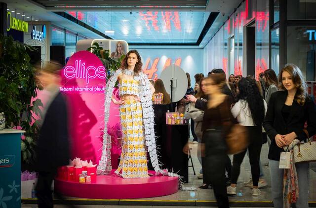 Stende lankytojai galėjo ne tik susipažinti su plaukų priežiūros produktais, bet ir iš arčiau pamatyti tvarumui skirtą iniciatyvą – projektą „Tvarus menas su ELLIPS“, kuriam drabužių dizainerė Rimantė Rimgailaitė sukūrė įspūdingą, iš panaudotų tepamų vitaminų plaukams plokštelių pagamintą kostiumą.