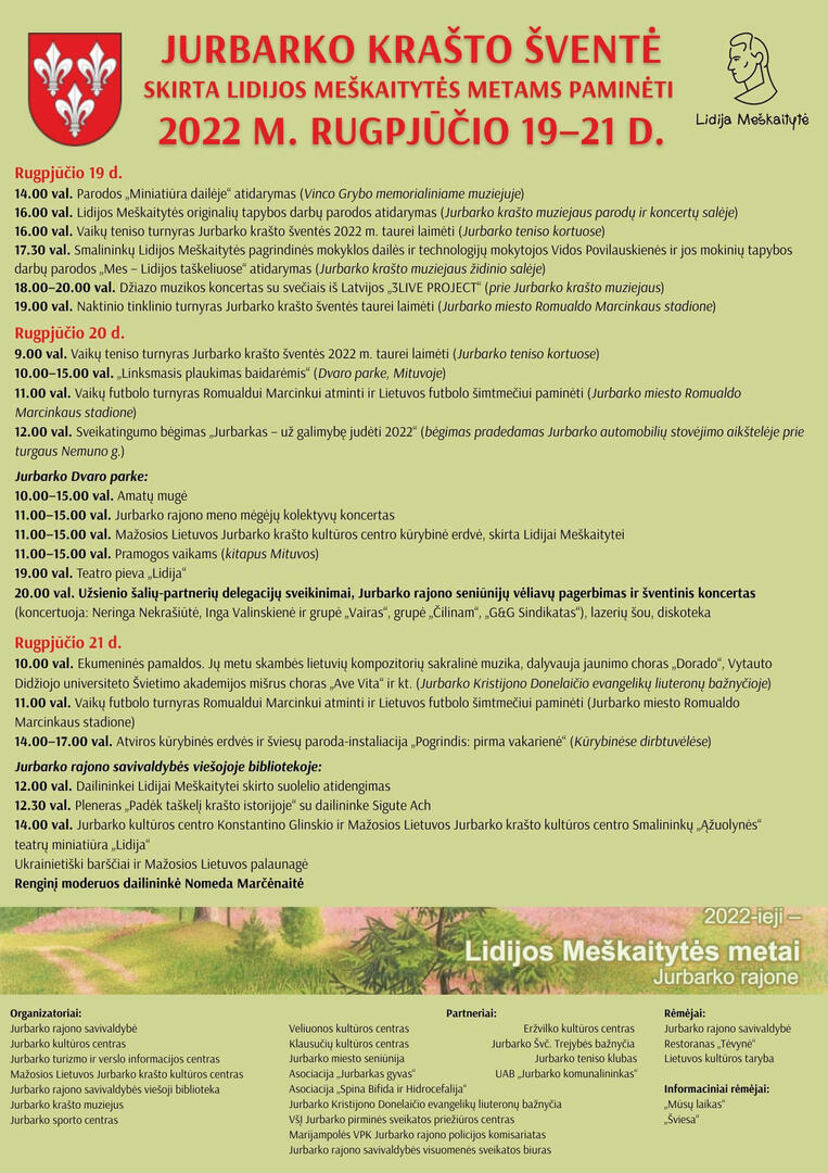 Jurbarko krašto šventė vyks iki sekmadienio. Ji skirta dailininkės, savamokslės tapytojos, miniatiūrininkės Lidijos Meškaitytės metams Jurbarko rajone paminėti.