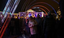 Taip pat nušvito visi kiti akcentai – artėjančiam Klaipėdos 770 metų jubiliejui dedikuotas šviesos tunelis „Laiko spalvos 770" bei instaliacija „Veidrodinės Anikės Kalėdos".