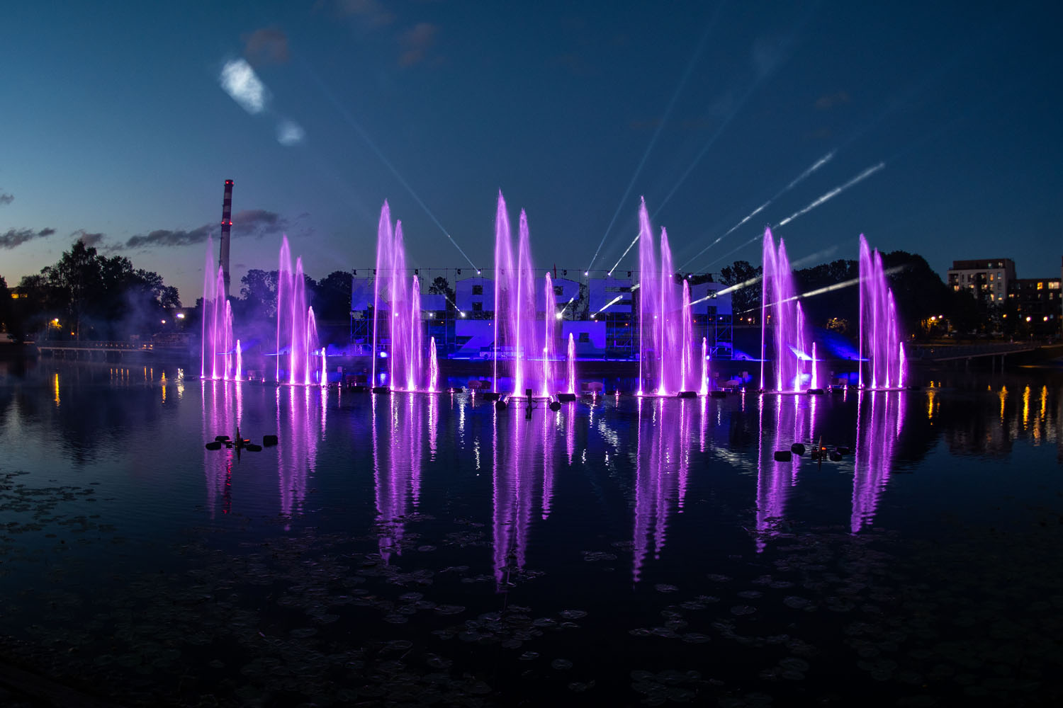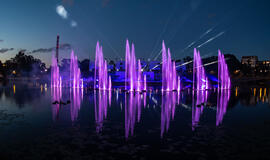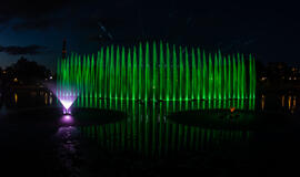 Vakar, Jūros šventės išvakarėse įvyko šokančių fontanų generalinė repeticija Jono kalnelyje.