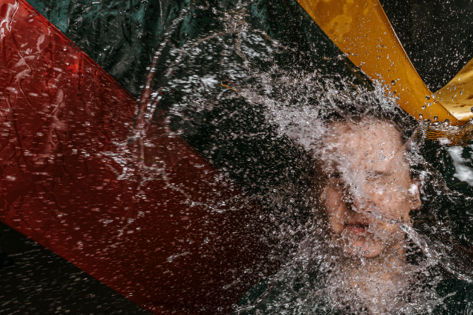 Parodoje vanduo tampa ne tik gyvybės, bet ir atgimimo simboliu. Portretuose užfiksuoti teatro nariai, o jų balsai perteikia asmenines istorijas.