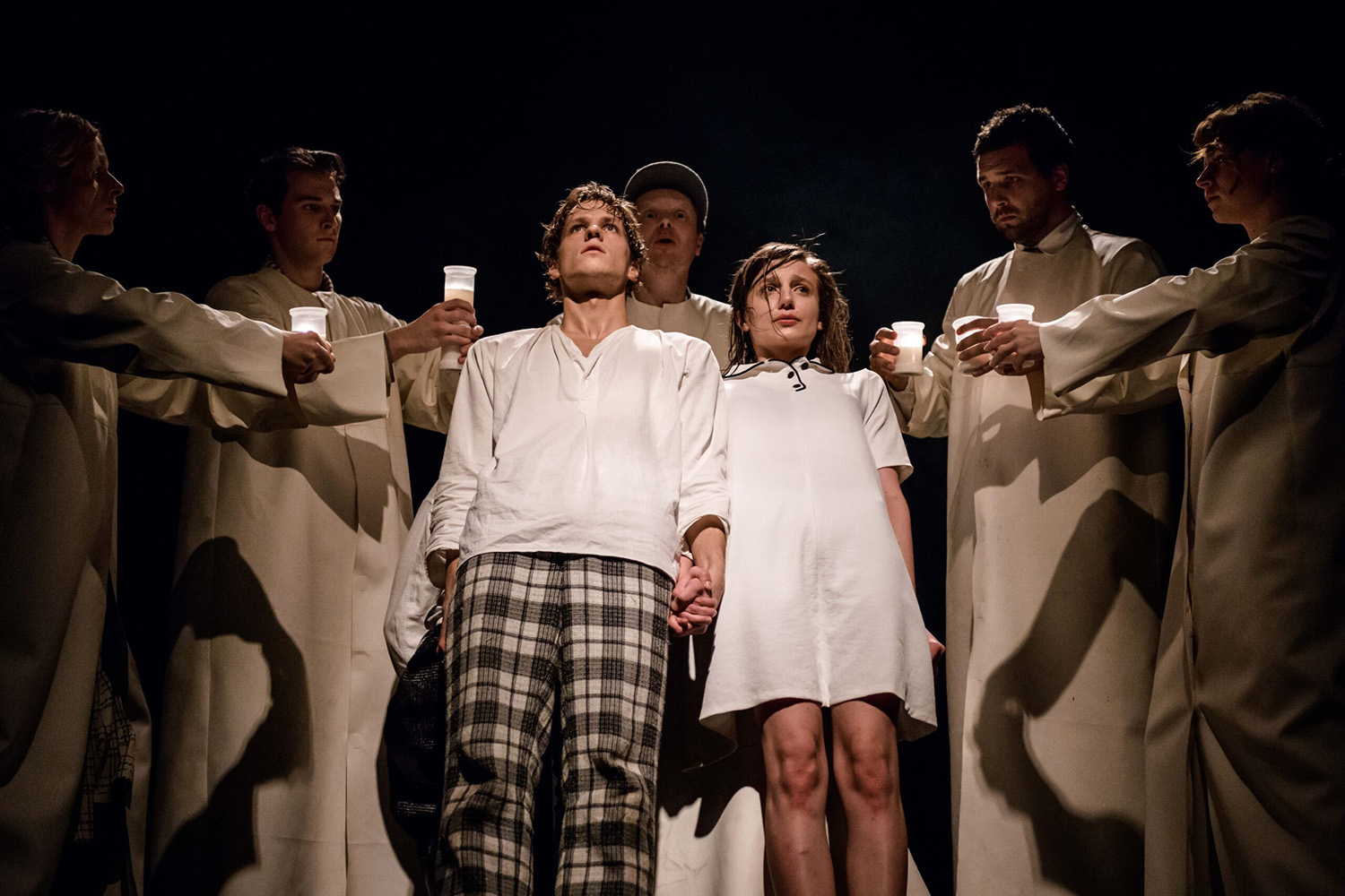 Dalios Tamulevičiūtės profesionalių teatrų festivalyje A. Giniočio režisuota „Riešutų duona“ pelnė keturis apdovanojimus. Klaipėdiečiai pamatys pagrindiniuose vaidmenyse debiutuojančius jaunuosius teatro aktorius Radvilę Budrytę (Liuka) ir Domą Urbonavičių (Andrius). Taip pat vaidina aktoriai Justina Smieliauskaitė, Vesta Šumilovaitė, Judita Urnikytė, Jurgis Marčėnas, Matas Pranskevičius, Dalius Skamarakas ir Vaidotas Žitkus.