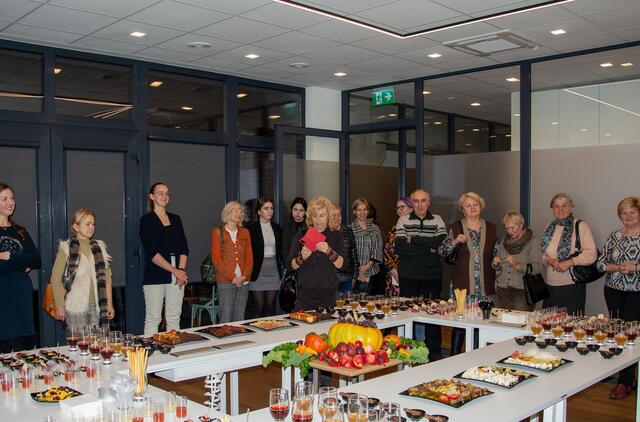 Bendruomenės nariai, įvairių institucijų atstovai ne tik skaniai vaišinsis, bet ir rokuosis su žemaite Virginija Giniotiene. Juk prasideda lietuvių kalbos dienos!