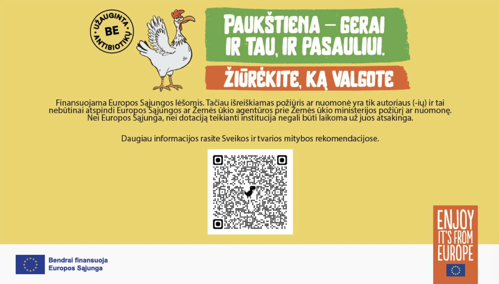 Supažindinsime jus su tvaria, be antibiotikų vykdoma paukštininkyste Europos Sąjungoje. Kviesime pasinerti į virtualios realybės patirtį, dalyvauti viktorinoje ir laimėti prizų. Mažųjų dalyvių lauks smagi edukacinės veikla, dėlionės ir prizai.