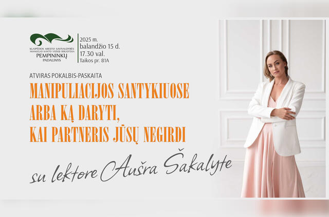 Paskaita „Manipuliacijos santykiuose arba ką daryti, kai partneris Jūsų negirdi“ su lektore Aušra Šakalyte