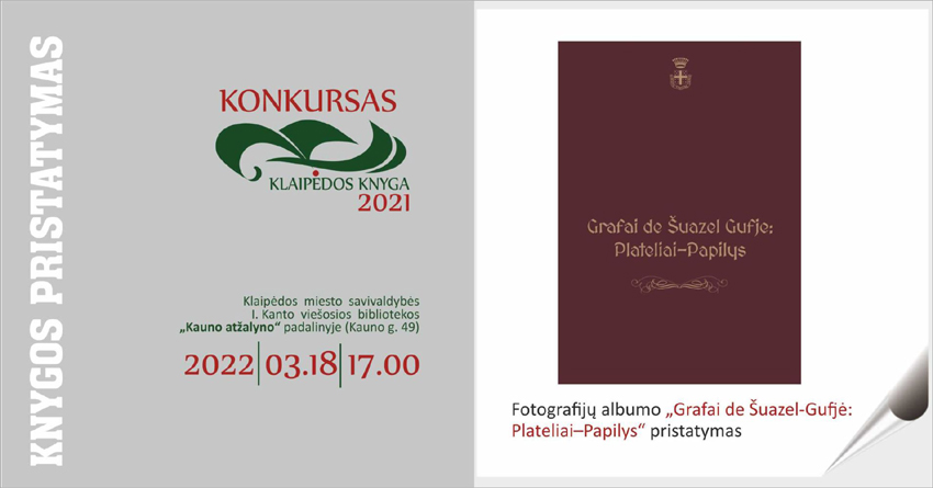 17 val. Klaipėdos miesto savivaldybės I. Kanto viešosios bibliotekos „Kauno atžalyno“ padalinyje (Kauno g. 49) bus pristatomas fotografijų albumas „Grafai de Šuazel-Gufje: Plateliai–Papilys“.