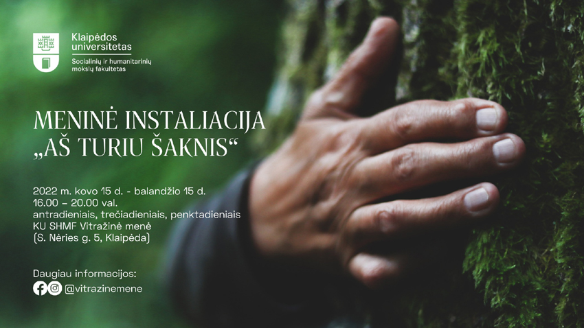 16-20 val. KU SHMF Vitražinėje menėje (S. Nėries g. 5) veiks meninė instaliacija „Aš turiu šaknis“. Bilietas – kumščio dydžio lauko akmuo, pageidautina iš pajūrio ar kur kitur, svarbu, kad jis būtų rastas sąmoningai (bilietų bus galima rasti ir vietoje).