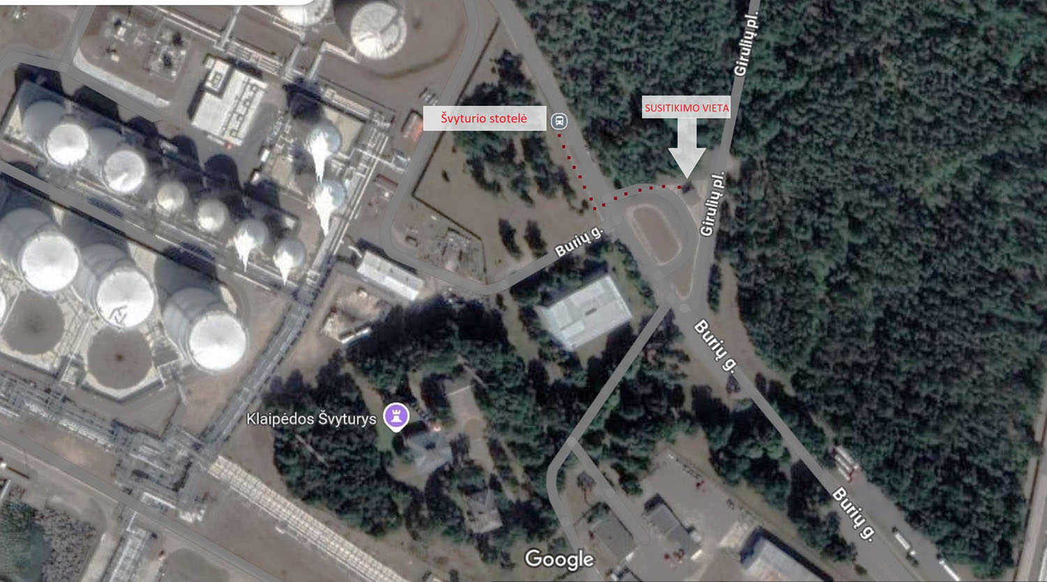 Susitikimo laikas: 13 val. Susitikimo vieta: Pirmoji Melnragė, Burių g., miesto autobusų Nr. 6 (grafikus galima rasti https://www.stops.lt/klaipeda/#bus/6/a-b ) apsisukimo aikštelė. Išlipti reikia Švyturio stotelėje (vykstant didžiaisiais, ne mikroautobusais, pažymėtais 6 numeriu).