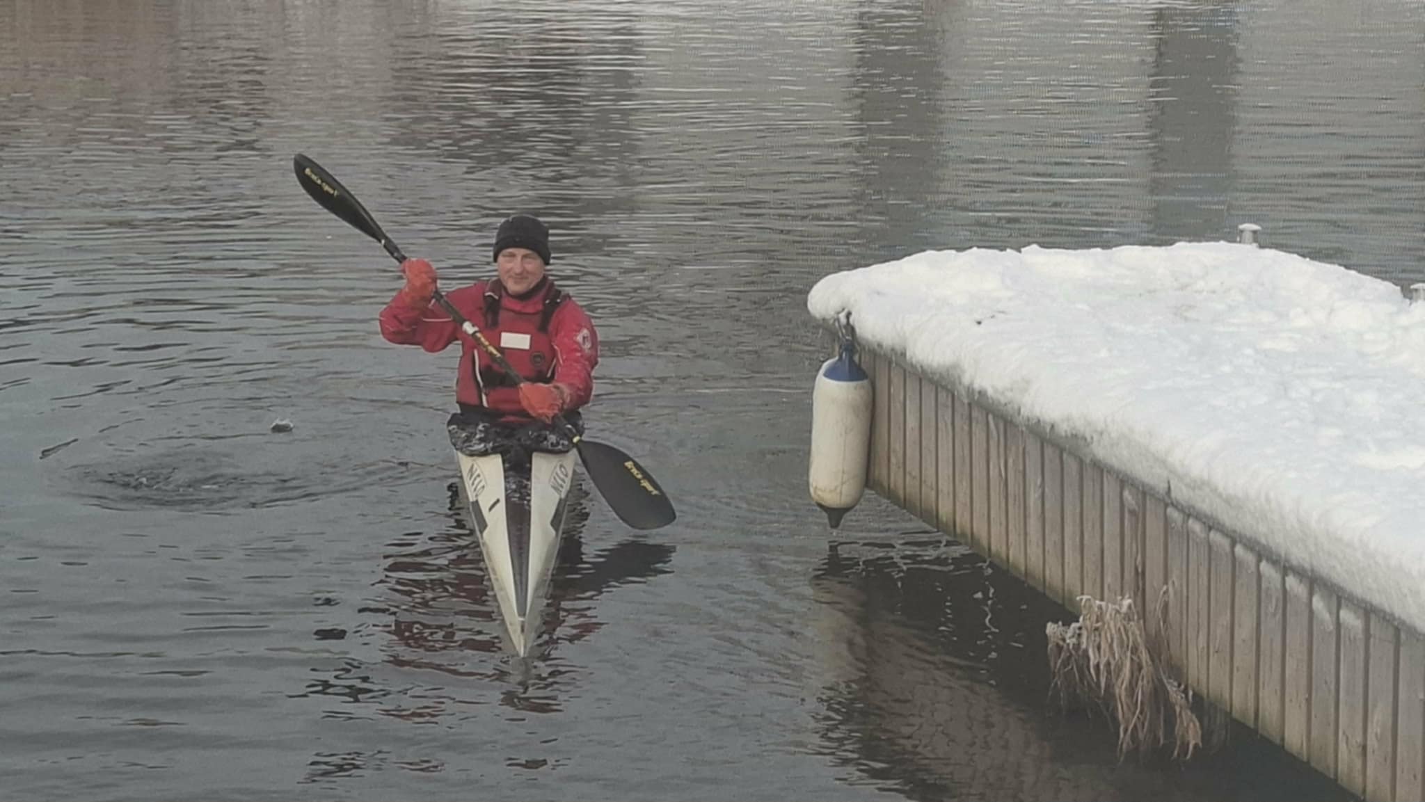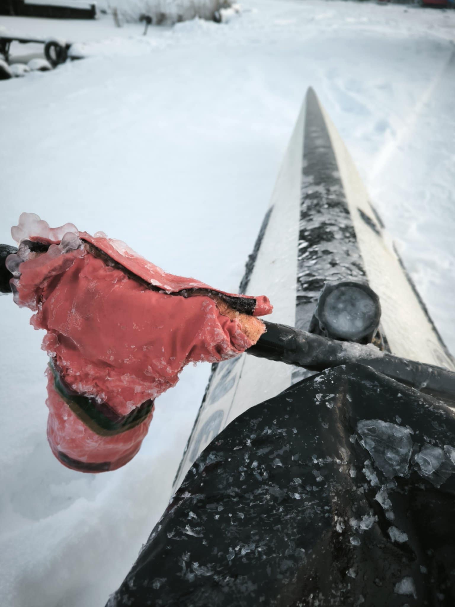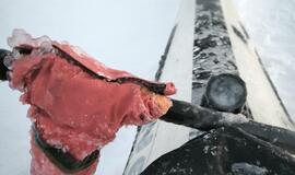 Nuotraukoje matyti, kad net prie valties prišalo apledijusi S. Bulovo pirštinė.