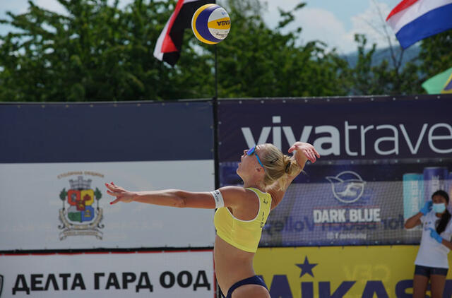 D grupės pusfinalyje penktadienį lietuvės 0-2 (13:21, 17:21) pralaimėjo slovėnėms Tjasai Kotnik ir Tajdai Lovšin.