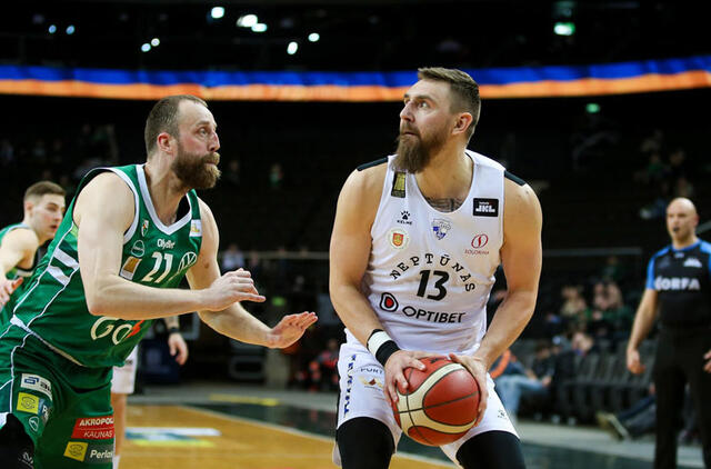 Nerukus žalgirietis Lukas Lekavičius po greitos pražangos stojo prie baudų metimo linijos ir pataikė tik kartą.