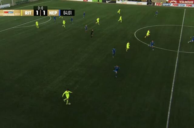 Bet kadangi gynėjas sužaidė į kamuolį ir kamuolys išmušamas nuo vartų, prasideda nauja ataka ir jau VAR’as to momento, kuris buvo prieš tai, netikrina. Ir jau tiktai kitos atakos metu buvo „Riterių“ pelnytas įvartis.