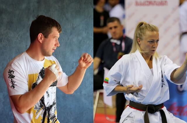 TARP ELITO. Eventas Gužauskas (kairėje) yra daugkartinis Europos karatė kiokušin čempionas, vadinamosios karatė olimpiados šeštos vietos laimėtojas. Jis pripažintas geriausiu 2020 ir 2021 metų Lietuvos karatė kiokušin sportininku.