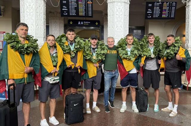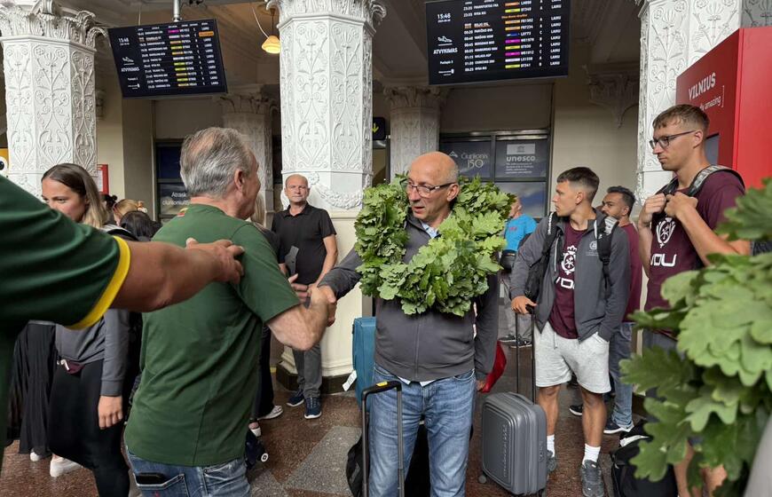 Klaipėdietis nekeičia tradicijų: čempionai sutikti su ąžuolo vainikais ir trispalvėmis (video)