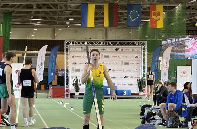 Edmundo Norvilo auklėtiniui šįkart teko užleisti nugalėtojo titulą vilniečiui Nikodemui Laurynui, įveikusiam 4,55 m kart (pirmas aukso medalis). Vicečempionu tapo kaunietis Gustas, įveikęs 4,45 m aukštį (Lietuvos 15-mečių absoliutus ir uždarų patalpų rekordas), trečias - Nikita Buziuk (Vilnius, 4,25 m).