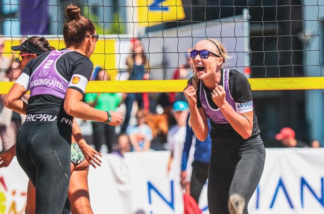 Penktadienį Klaipėdos atstovės pratęsė pergalių seriją - 2-0 (21:19, 21:15) nugalėjo suomes Idą Sinisalo ir Sarą Sinisalo ir žengė į turnyro pusfinalį.