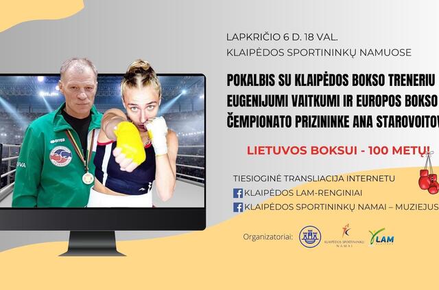Lapkričio 6 dieną 18 val. Klaipėdos sportininkų namuose svečiuosis ilgametis Klaipėdos bokso treneris Eugenijus Vaitkus ir Europos bokso čempionato prizininkė Ana Starovoitova.