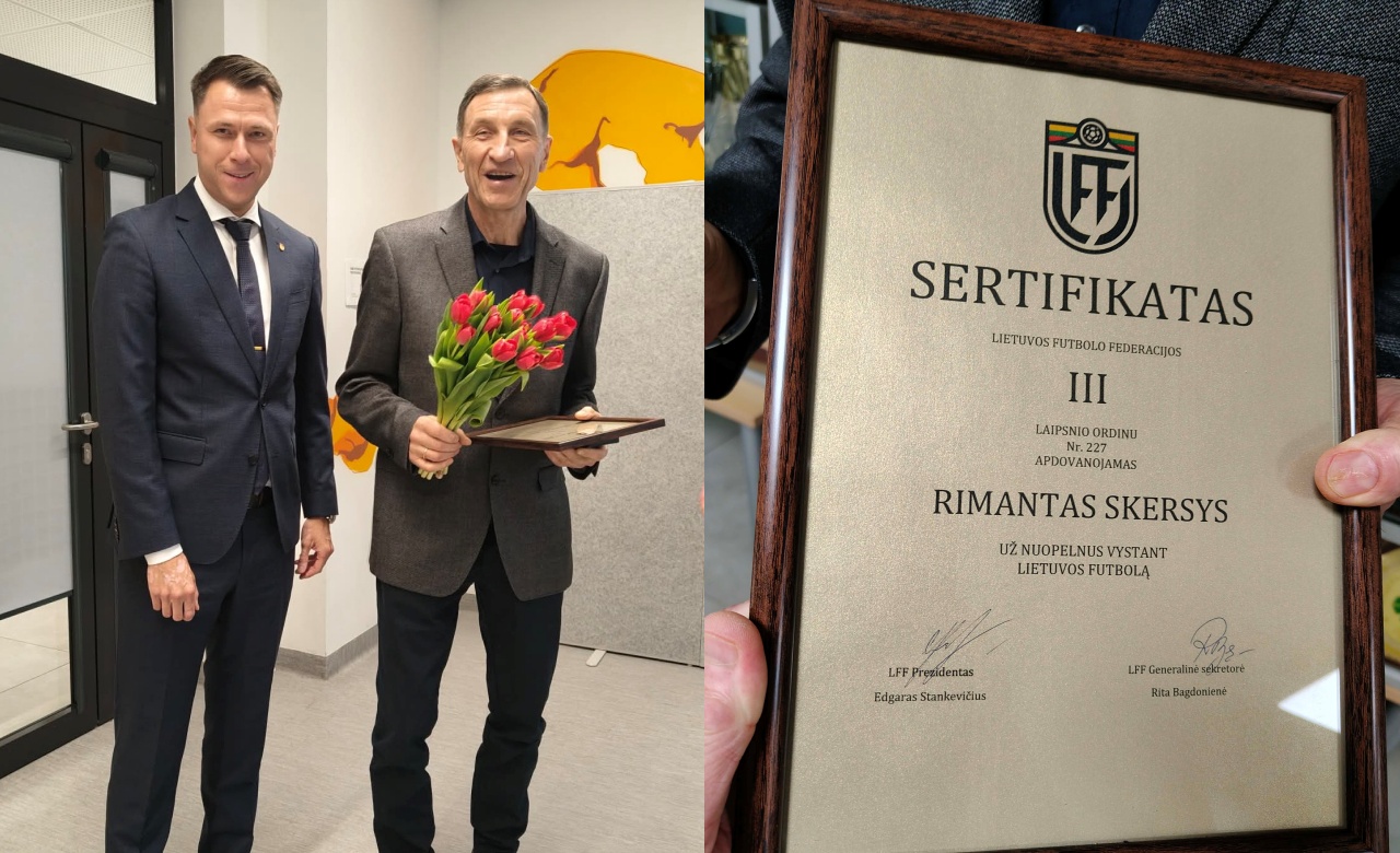Praėjusią savaitę 65-erių metų gimtadienį paminėjęs žinomas Klaipėdos futbolo žaidėjas ir treneris Rimantas Skersys sulaukė Lietuvos futbolo federacijos (LFF) dėmesio. Į Klaipėdą atvykęs LFF prezidentas Edgaras Stankevičius įteikė LFF III laipsnio ordiną už nuopelnus vystant Lietuvos futbolą.