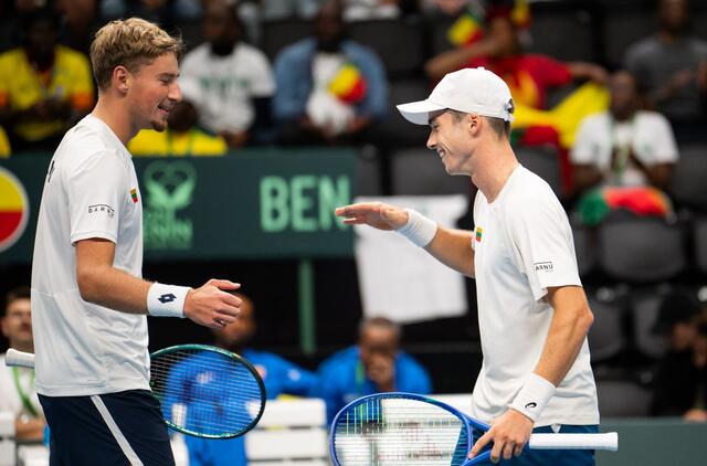 Lietuvos rinktinė tapo nepavejama varžovams po dvejetų mačo, kuriame E.Butvilas ir V.Gaubas 6:0 6:2 sutriuškino P.Agbą-Panzą ir Sodiką Nudogbesį (Sodick Noudogbesi).