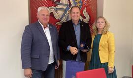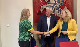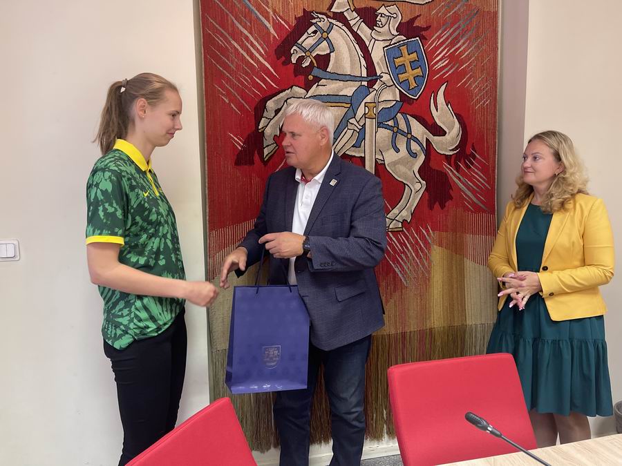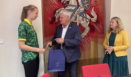 J. Jocytė šiuo metu yra ne Lietuvoje, tad į pagerbimą pas Klaipėdos merą atėjo jos tėtis Alvydas Jocys.