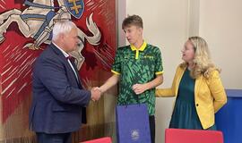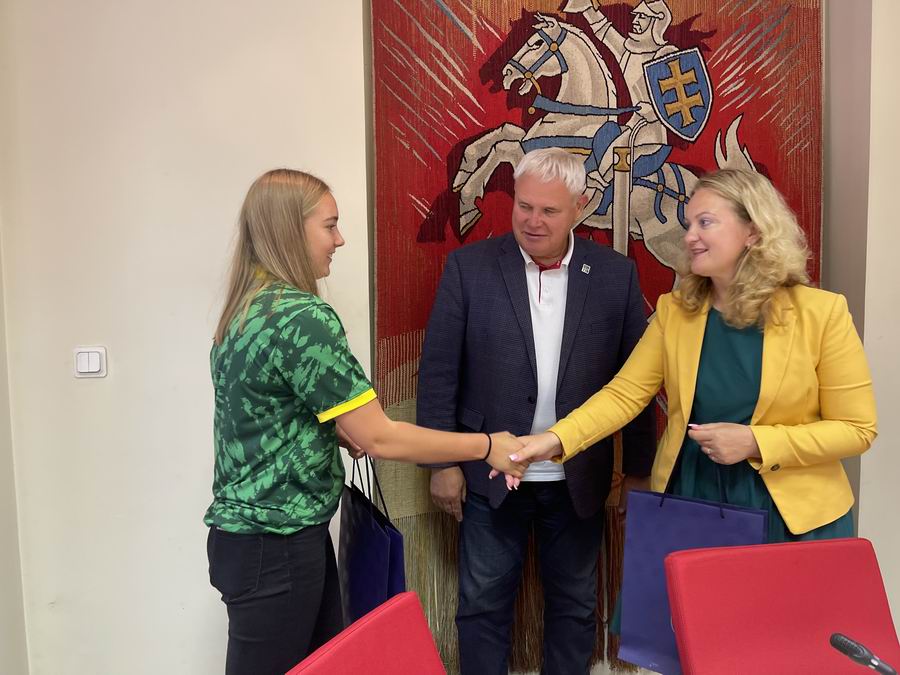 „Jūsų visus pasiekimus, nuotraukas, emocijas mes sekame ir labai džiaugiamės, kad turime tokius sportininkus, kurie yra pavyzdys kitiems, jaunesniems sportininkams. Jie nori lygiuotis į jus. Tai skatina visus pasitempti. Noriu palinkėti, kad jūsų darbas ir ryžtas nenublėstų“, - linkėjo R. Rumšienė.