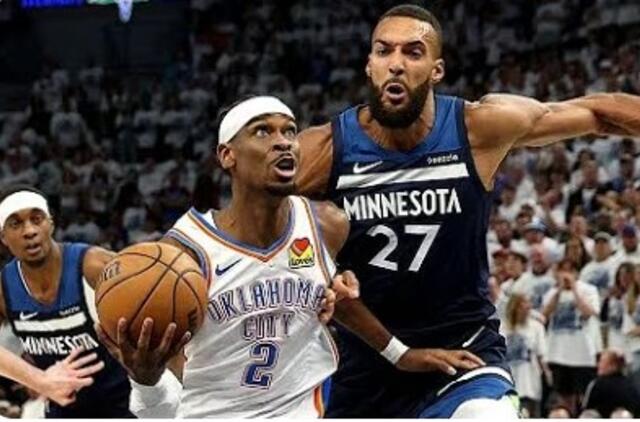 Vakarų konferencijos finalo serija persikėlė į Minesotą, kur pirmąją pergalę pasiekė aikštės šeimininkai, „Timberwolves“ krepšininkai. Pastarieji savo sirgalių akivaizdoje 143:101 (34:14, 38:27, 35:29, 36:31) sutrypė Oklahomos „Thunder“ komandą.