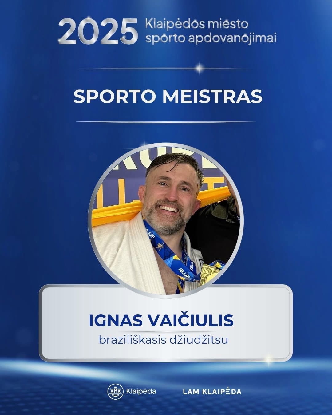 Priminsime, kad šią savaitę Klaipėdos braziliškojo džiudžitsu akademijos vardas skambėjo ir per Klaipėdos miesto sporto apdovanojimų renginį – 2025 metų sporto meistru pripažintas Ignas Vaičiulis.