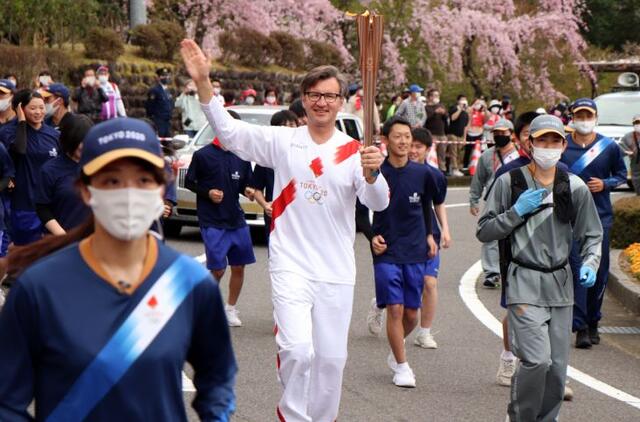 Jaotsu mieste olimpinį deglą nešė Lietuvos ambasadorius Japonijoje Gediminas Varvuolis © Organizatoriai / nuotr.