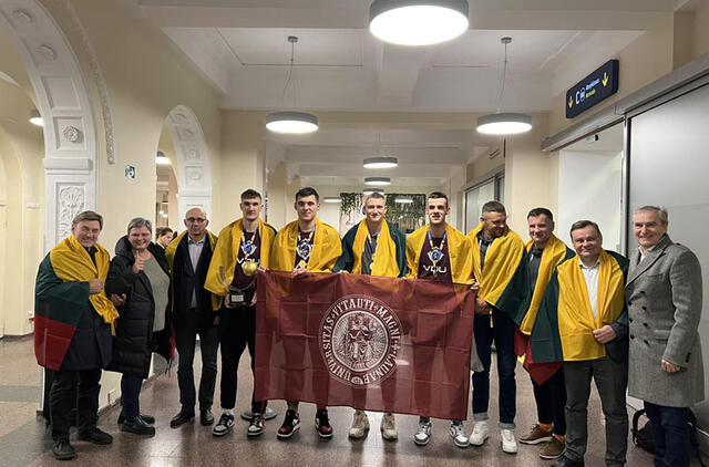 Čempionus Vilniaus oro uoste pasitiko klaipėdietis Lietuvos studentų krepšinio lygos prezidentas Rimantas Cibauskas - įteikė žaidėjams po Lietuvos vėliavą ir gėlių puokštę.