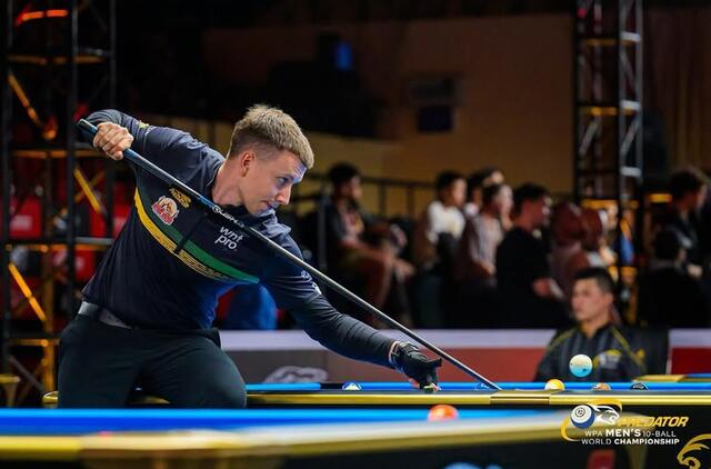 Pirmajame rate lietuvis 2-0 nugalėjo Jungtinių Arabų Emyratų (JAE) atstovą Mahmoudą Charifą, bet antrajame 1-2 nusileido Filipinų sportininkui Jeffrey‘ui de Lunai.