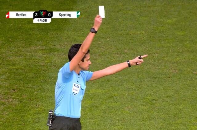 Pateks į futbolo istoriją – Portugalijoje rungtynių metu parodyta balta kortelė