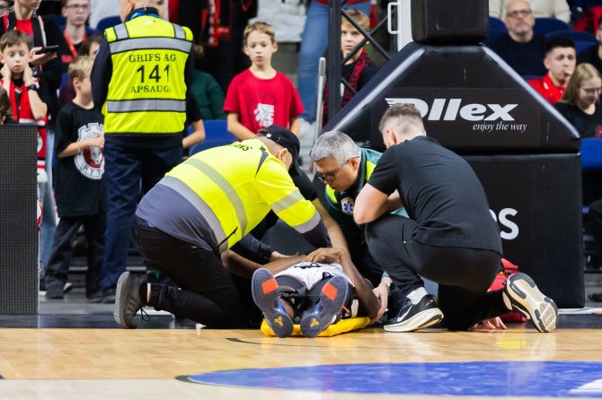 Kaip iš karto po rungtynių televizijos studijoje pranešė LRT žurnalistas Benas Klimaitis, amerikietis „kalba, judina rankas ir kojas, o šiuo metu yra išvežtas į ligoninę, kur jam bus atlikti išsamūs tyrimai“.
