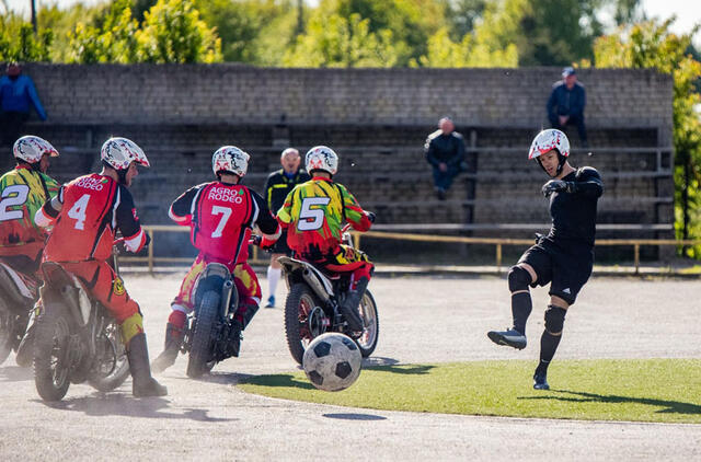 EMOCIJA. Motobolas - azartiškas ir žiūrovų akiai įdomus žaidimas. Kovų azartą sustiprina dūzgiantys motociklai aikštelėje. Organizatorių nuotr.