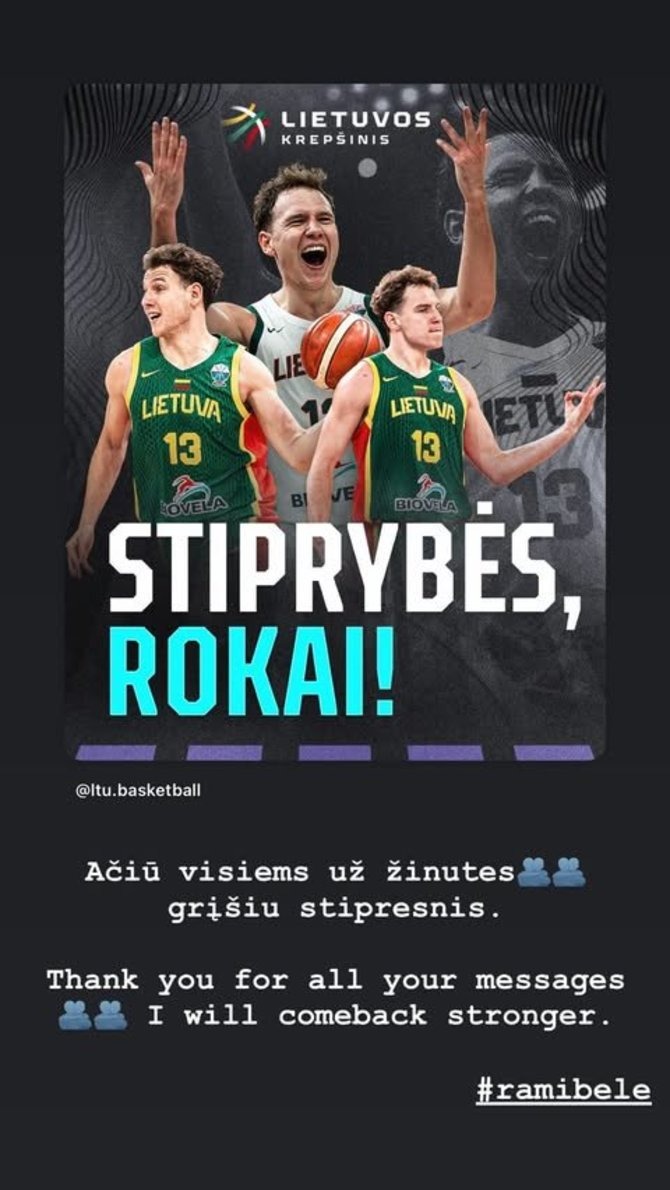 Roko Jokubaičio žinutė / „Instagram“ nuotr.