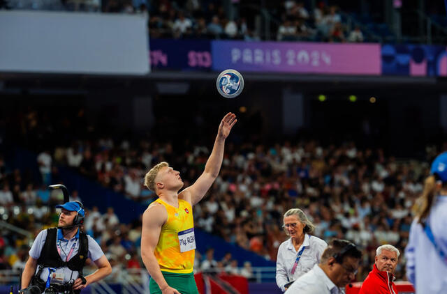 FOTO APRASAS IŠ KARTOS Į KARTĄ. Mykolas Alekna Paryžiuje pagerino net 20 metų gyvavusį olimpinį disko metiko rekordą, kuris priklausė jo tėčiui Virgilijui Aleknai.