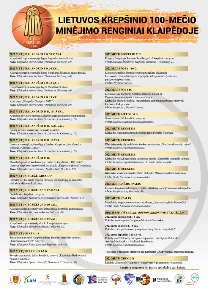 Lietuvos krepšinio 100-mečio minėjimo renginių Klaipėdoje programa: